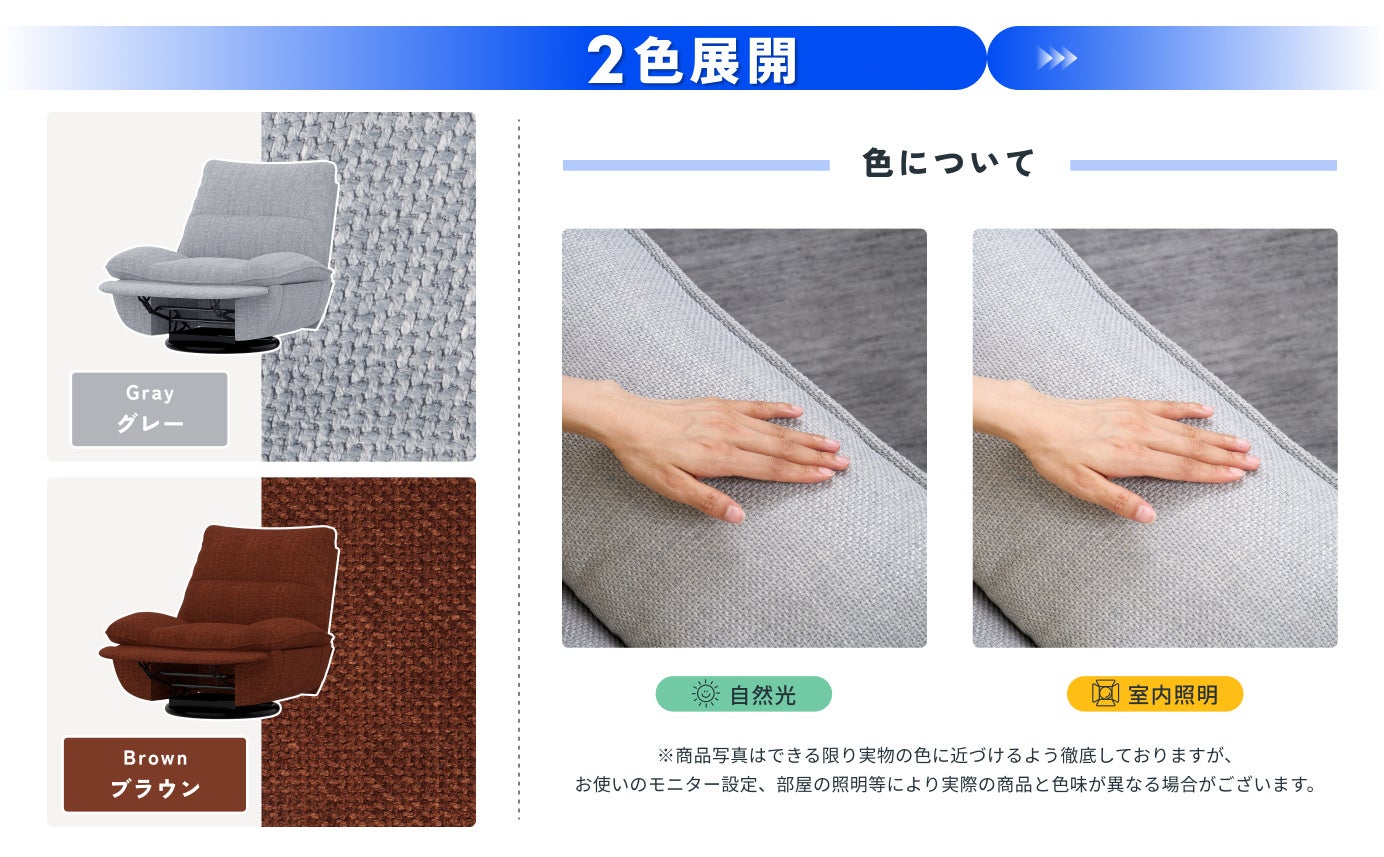 スイベル&ロッキング:回転可動範囲270°のスイベル機能と、ハンモックのような心地よさを実現する前後30°のロッキング機能を搭載。