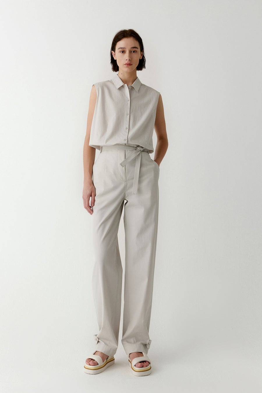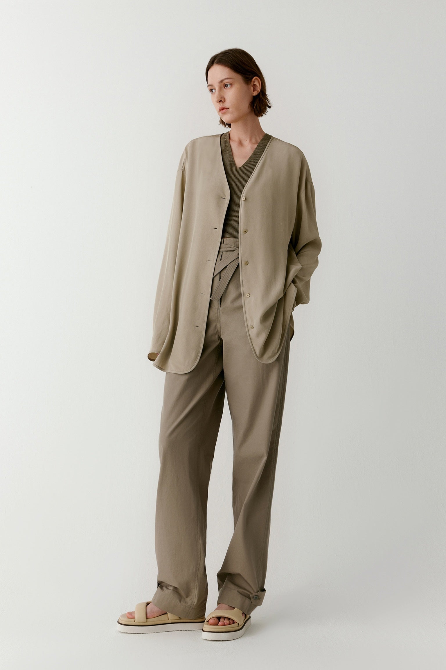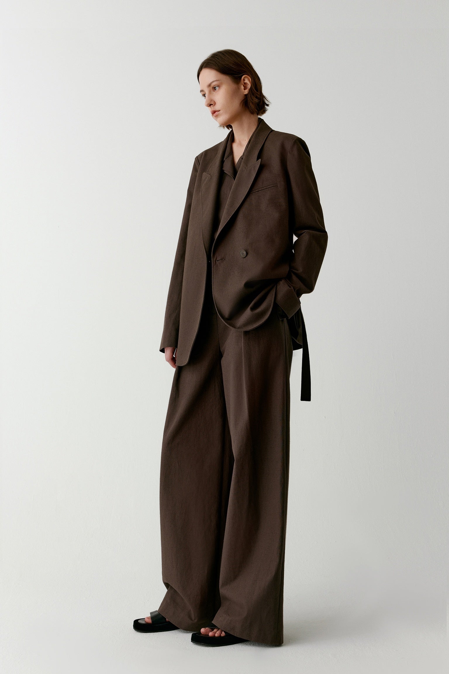 エスプレッソブラウン コットンリネンキャンバス トラウザーズ