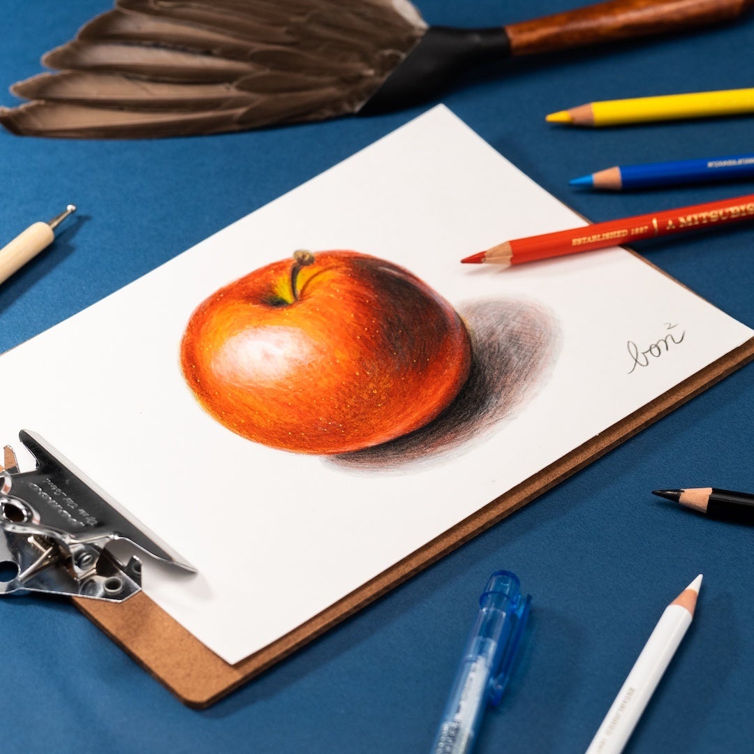 リアルに表現するための描き方やコツを教わりながら、りんごの色鉛筆画を描いていきます。色鉛筆の基本的な塗り方から練習するので、初心者の方でも安心して取り組めます。