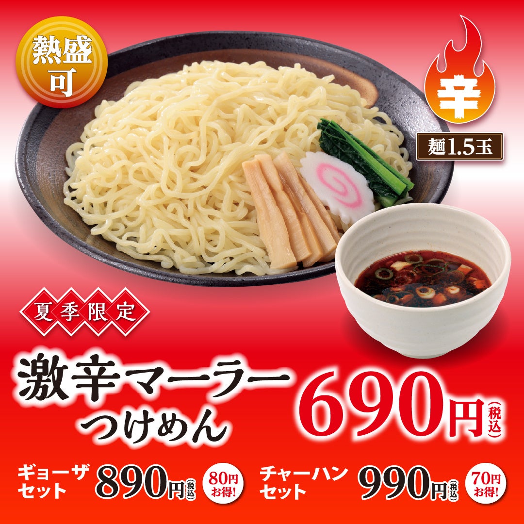 株式会社幸楽苑ホールディングス(本社:福島県郡山市)が運営する「幸楽苑」は、2024年5月31日(金)から、つけダレに一味唐辛子と山椒をふんだんに使用した「激辛マーラーつけめん」690円(税込)、牛焼肉のトッピングと大粒の背脂を使用したつけダレが特徴の「背脂牛肉つけめん」790円(税込)の2品を、夏季限定販売いたします。本商品にはそれぞれ「熱盛り」もご用意しております。
