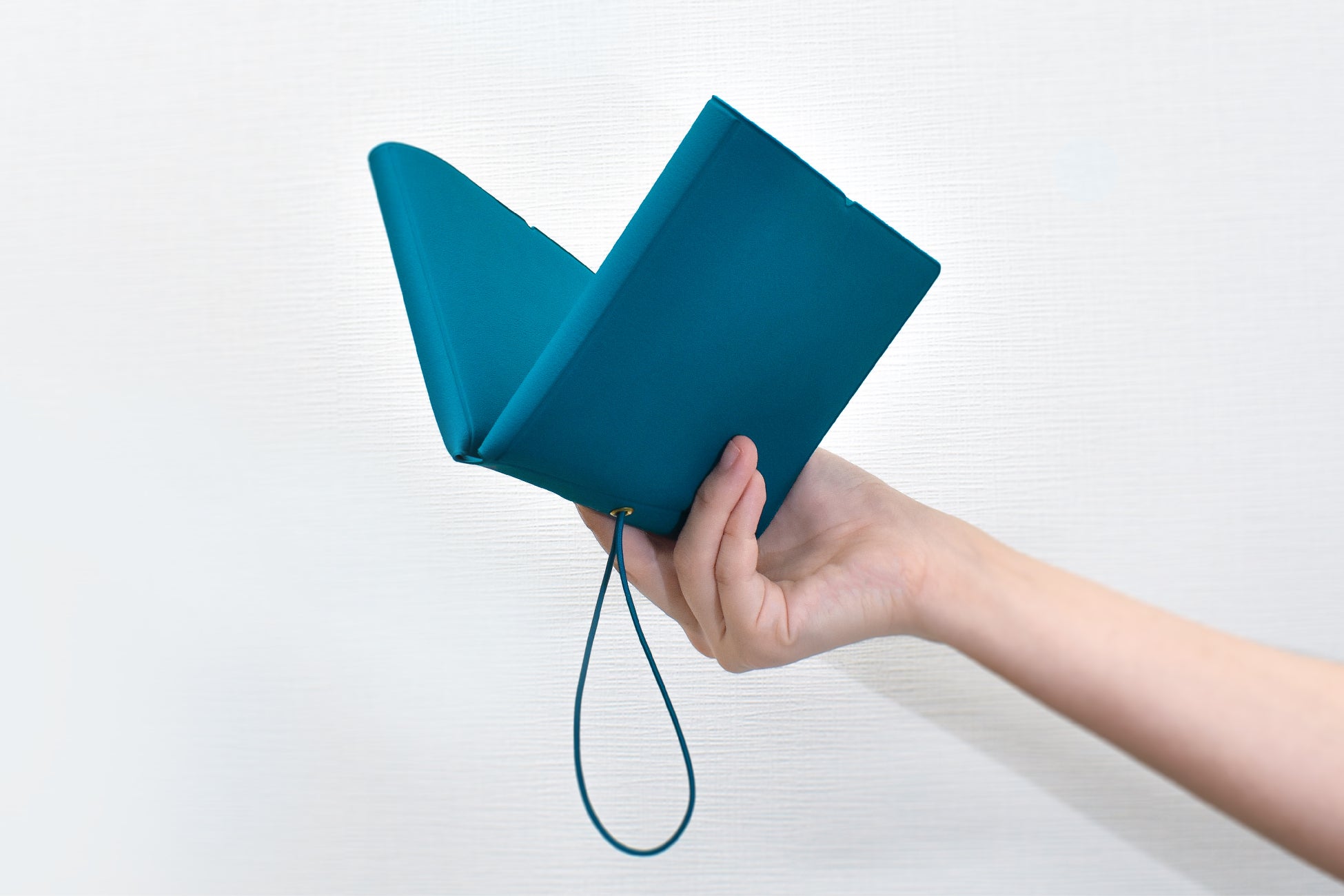 ハンカチのように折り畳み、コンパクトに携帯できる業界唯一の手帳です。(特許取得済み)