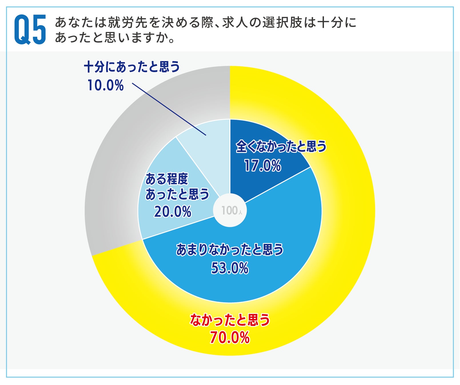 5… 就労先の選択肢が「十分にあった」と感じた人はわずか1割