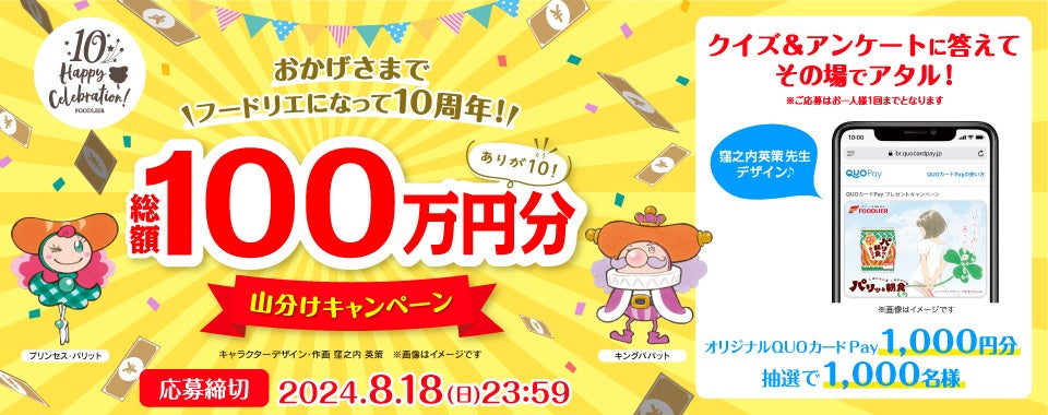 フードリエ10周年記念!抽選で1,000名様にQUOカードPayが当たる「総額100万円分山分けキャンペーン」が7月29日(月)より開催