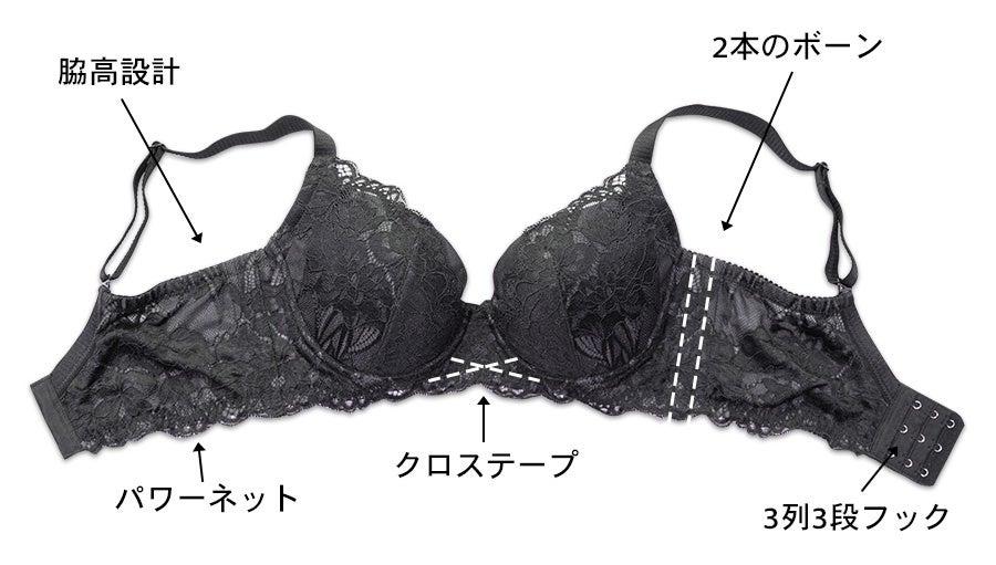 とくに加齢や授乳とともに柔らかくなり、流れてしまいやすくなったお肉をしっかりと集め、バストを高い位置でキープする習慣をつけてくれる「元祖脇肉キャッチャー 」。その特徴は以下の4点となります。