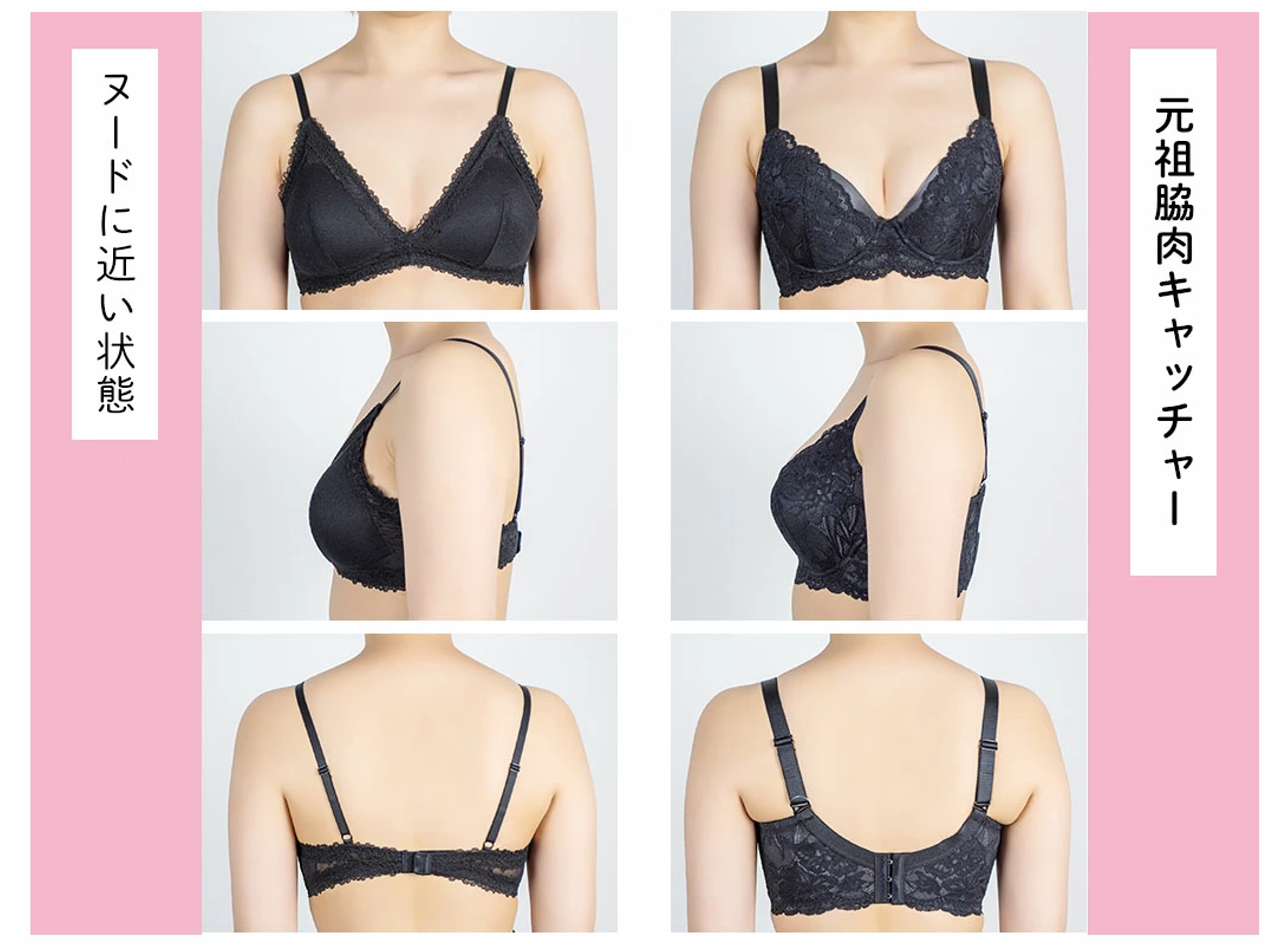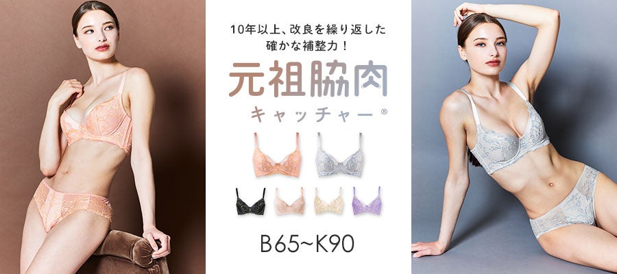 「脇肉キャッチャー®」シリーズは、加齢や授乳による体形崩れに悩む女性をはじめ、体形を美しく魅せたいすべての女性のために2010年に企画。脇高ブラのパイオニアとして、シリーズ累計販売本数75万枚を超える大人気商品となりました。その中でも最も高い補整力でナンバーワンの人気を誇るのが「元祖脇肉キャッチャー」です。