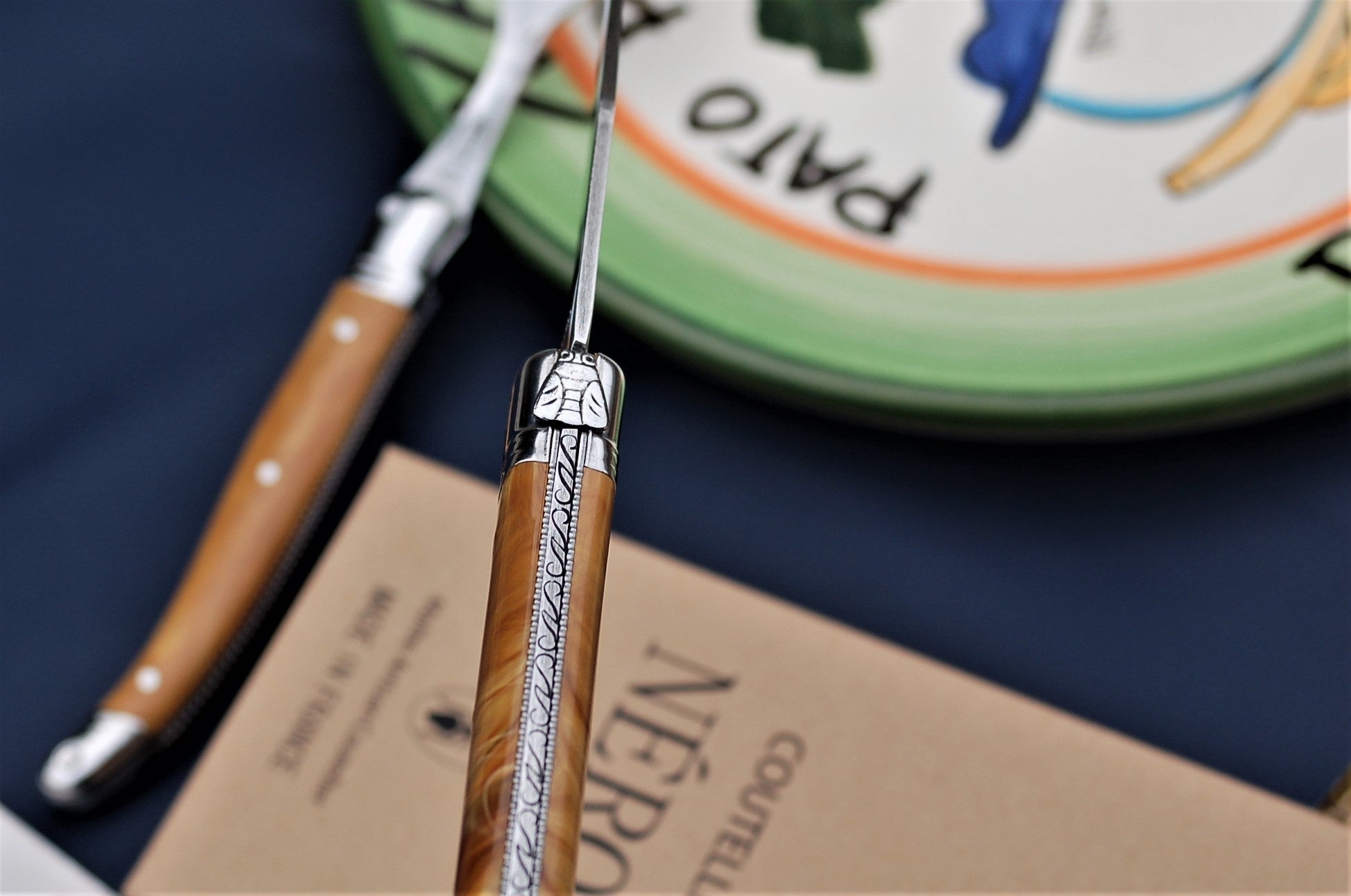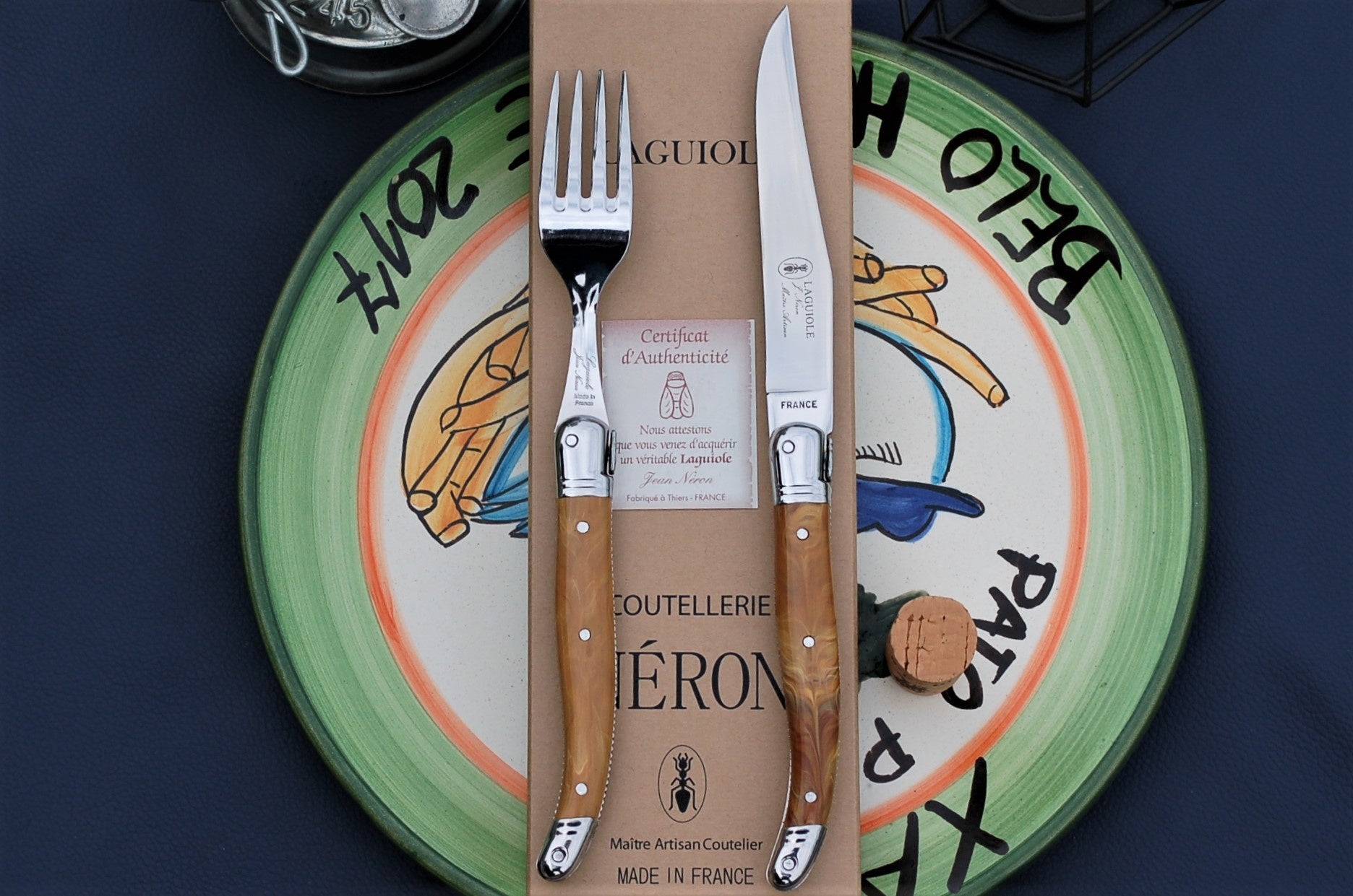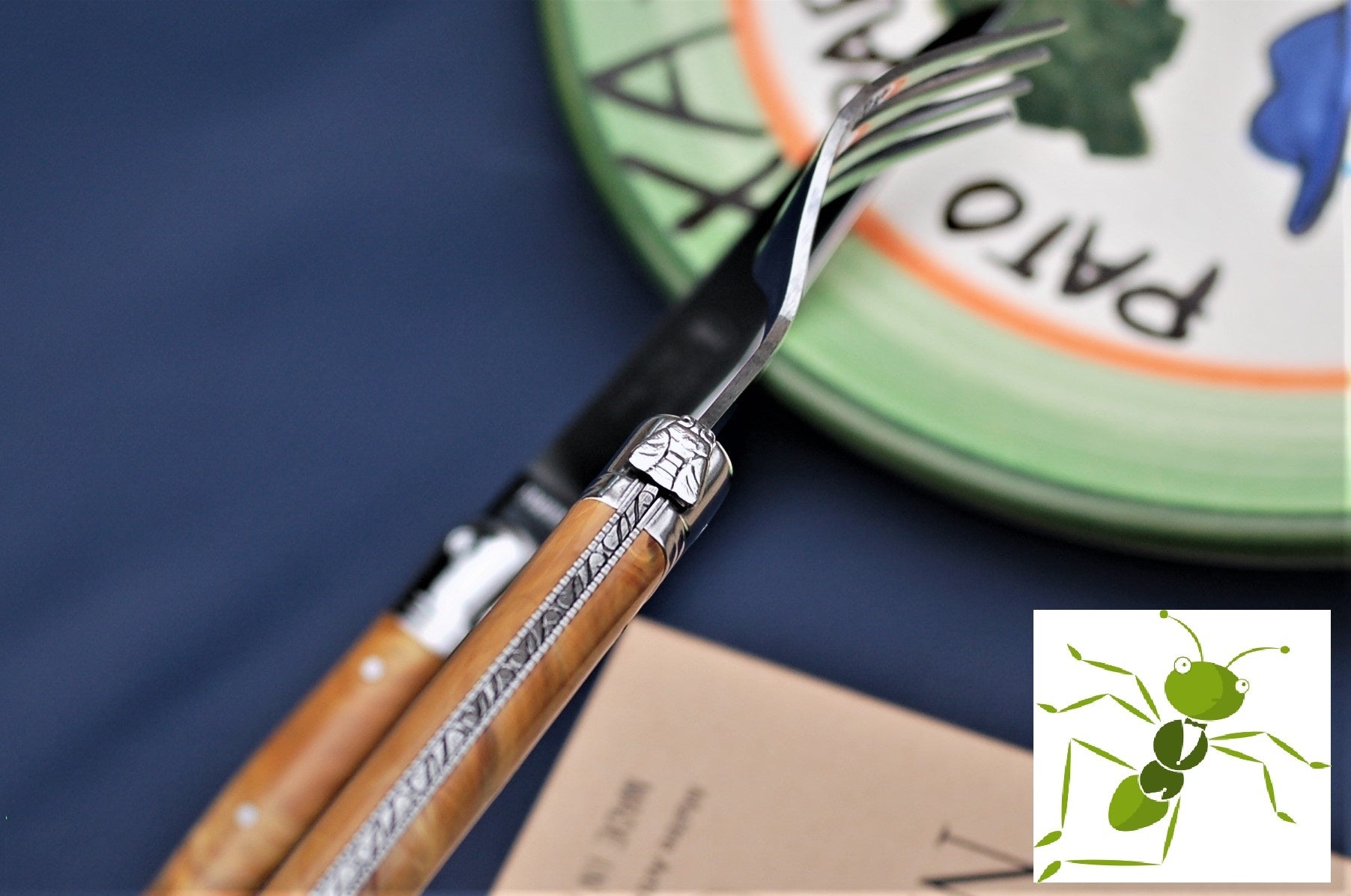 フランス・NERON社の高級輸入カトラリー 最新ハンドルカラー ”オリーブ・マーブル” 欧州基準適合のニッケル・フリー ステンレス材を使用