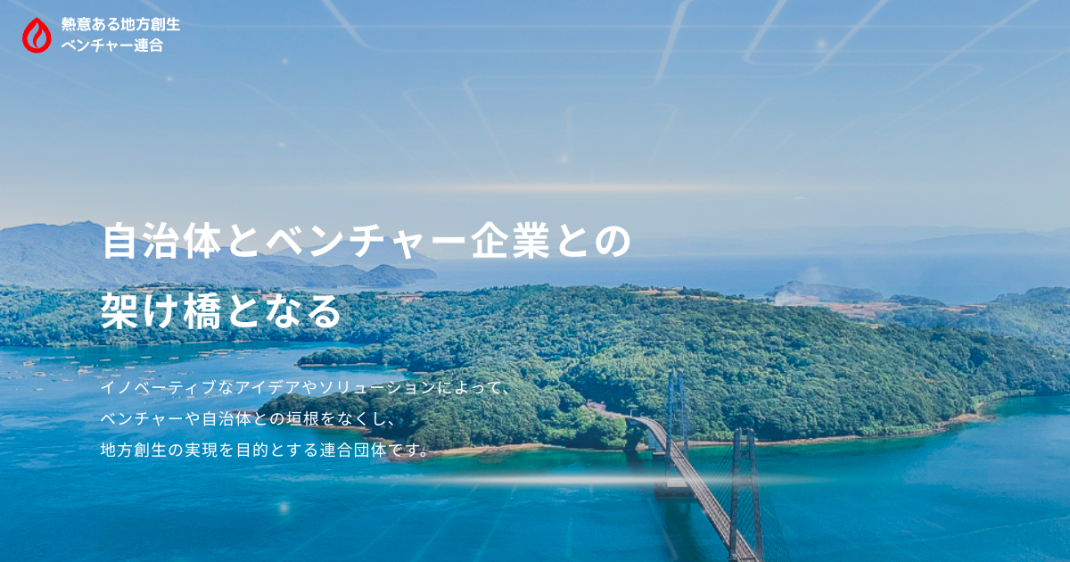 ベンチャー企業のもつイノベーティブなサービスにより地域課題解決や地域事業の生産性を上げ、持続的な地域の経済発展に貢献することを目的として2015年より活動開始。現在約80社のベンチャー企業らが参画しています。地方創生分野で活躍するキーパーソンを招いた勉強会や、地⽅創⽣ベンチャーサミットを通じ、地方自治体や⺠間事業者等に対し広く情報発信を行い、地方創生実現のための機運醸成を図る取り組みを行っております。