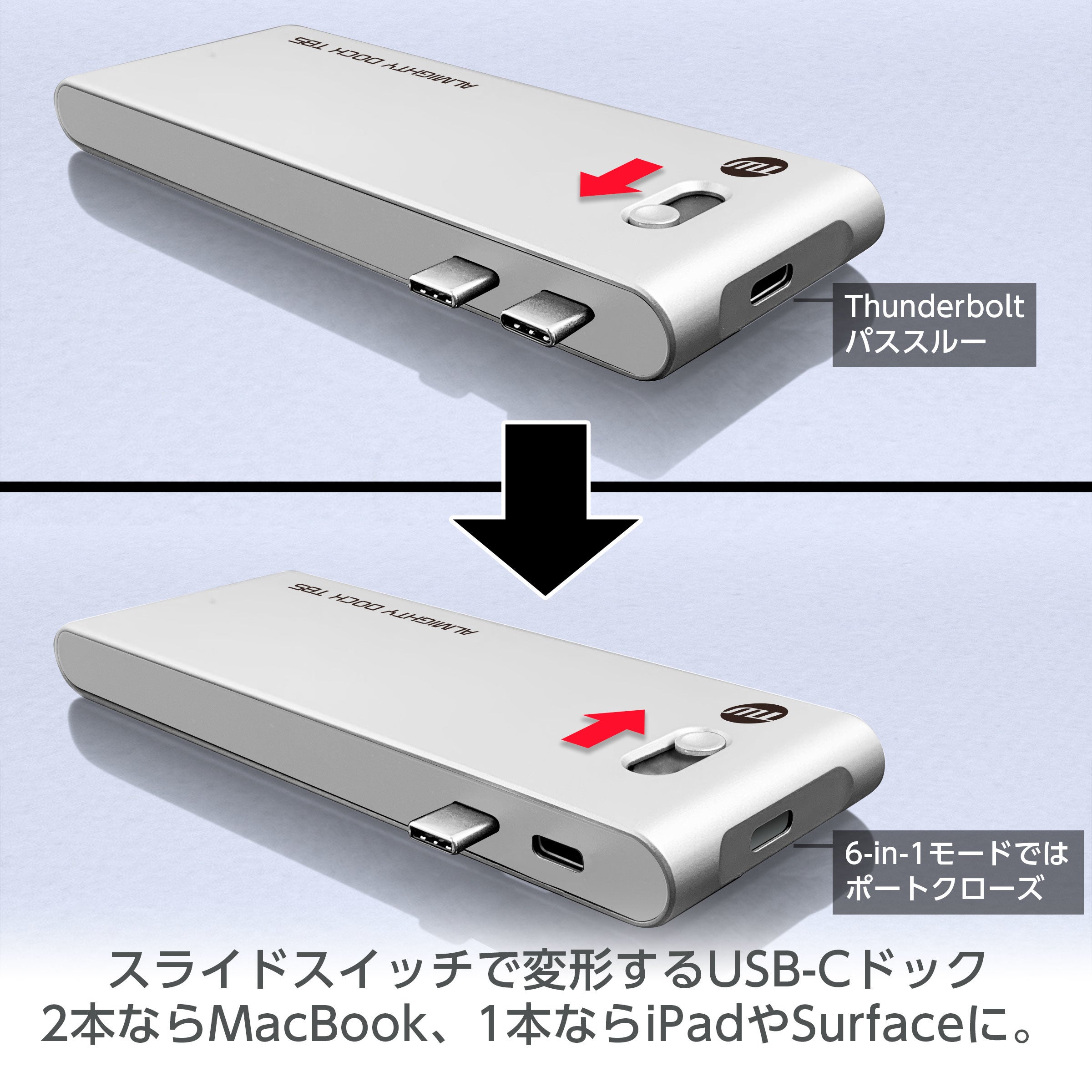 - スライドスイッチを使用すれば、iPadやWindows PCでも6-in-1 USBハブとして利用可能