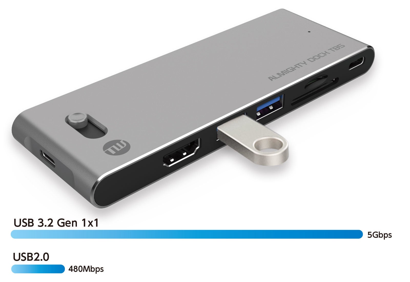 TUNEWEAR ALMIGHTY DOCK TB5 | デバイスに合わせて可変可能なケーブルレス一体型USB-Cドッキングステーション。