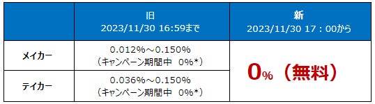*「取引所取引手数料無料キャンペーン」実施につき2023/11/30 17:00まで取引手数料は無料です。