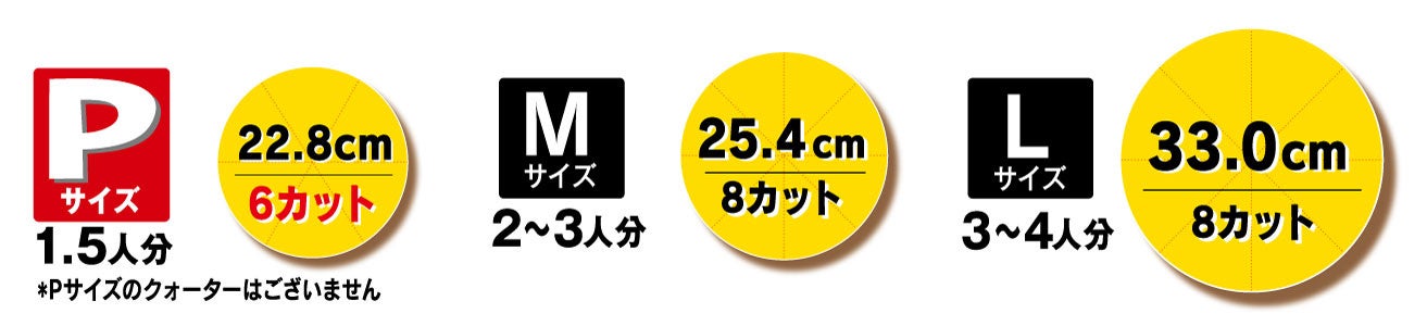 またLサイズは、ご家族やお集りの3人から4人というシーンにご利用しやすい、新Lサイズ(13インチ8カット)へリニューアルいたします。