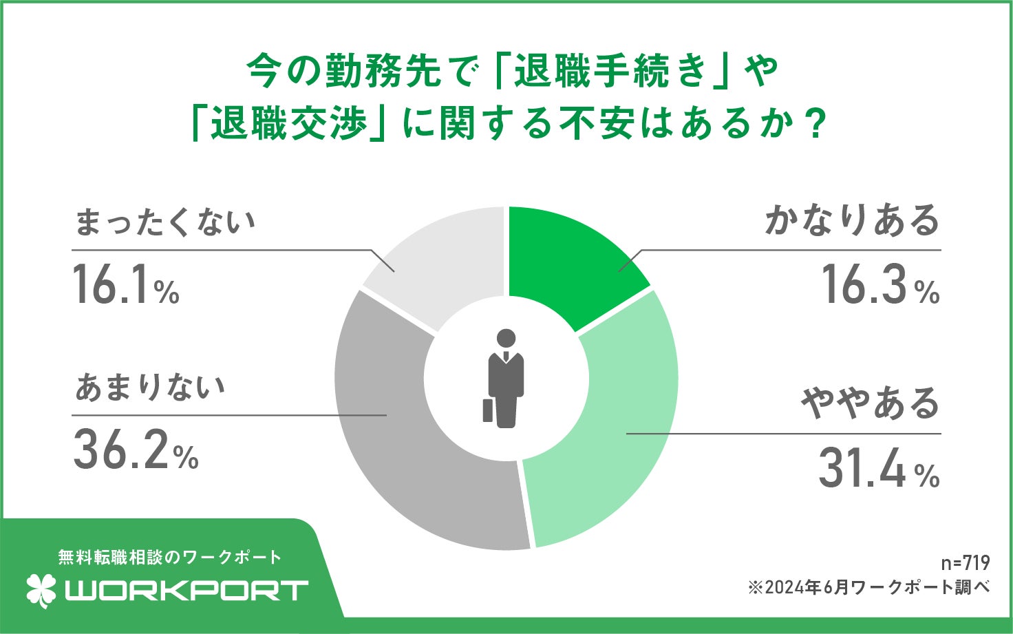 総合型転職エージェントの株式会社ワークポート(本社:東京都品川区、福岡県福岡市博多区 代表取締役会長CEO:田村 高広)は全国のビジネスパーソン719人(20代~40代・男女)を対象に、「退職時のトラブル」についてアンケート調査を実施しました。
