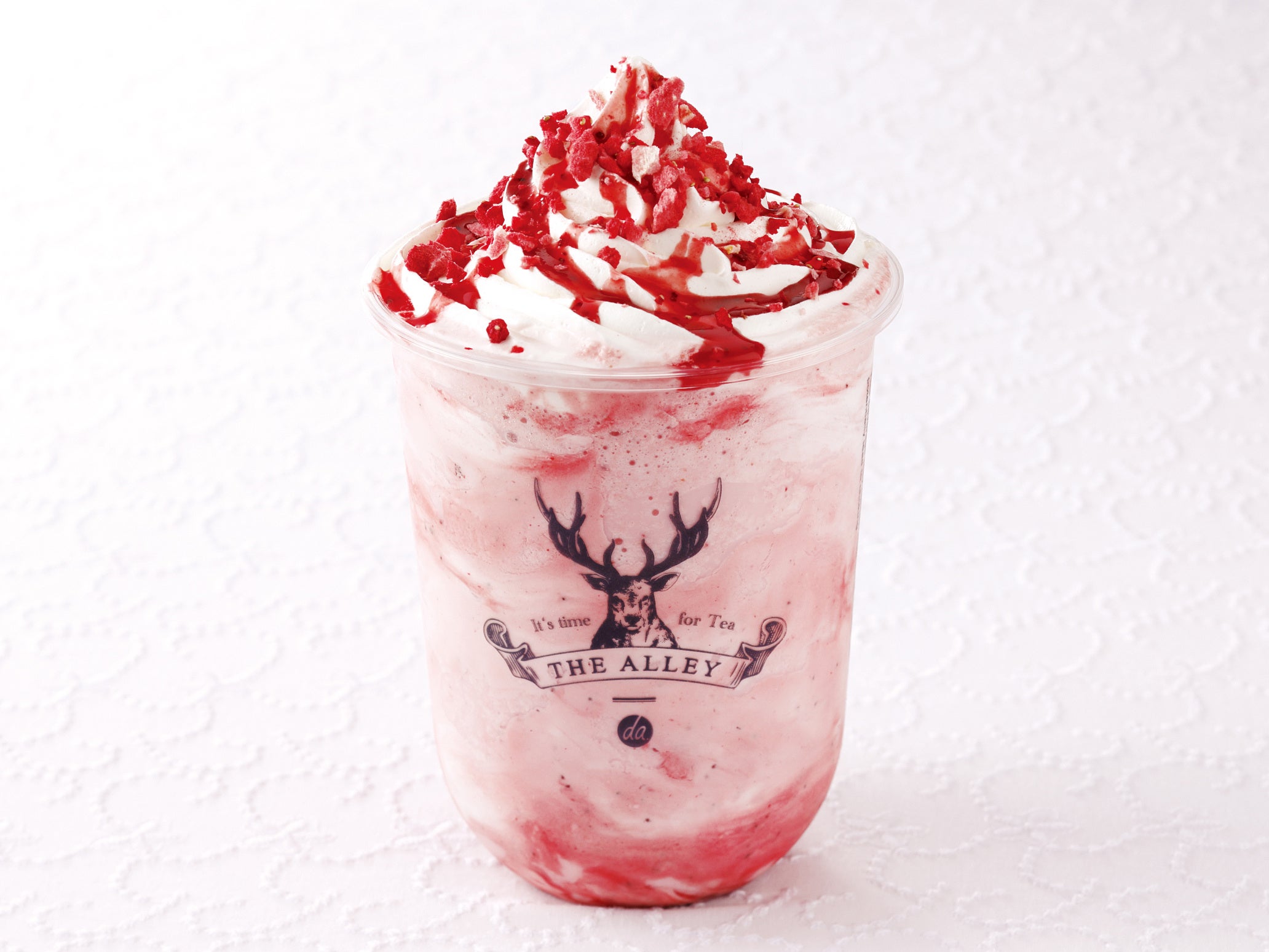 フローズン仕立てのチーズドリンクのベースに苺ソースと茹であずきをミックス。トッピングには、茹であずきとぎゅうひ、苺を組み合わせることで、まさに「飲む苺大福」を実現しました。