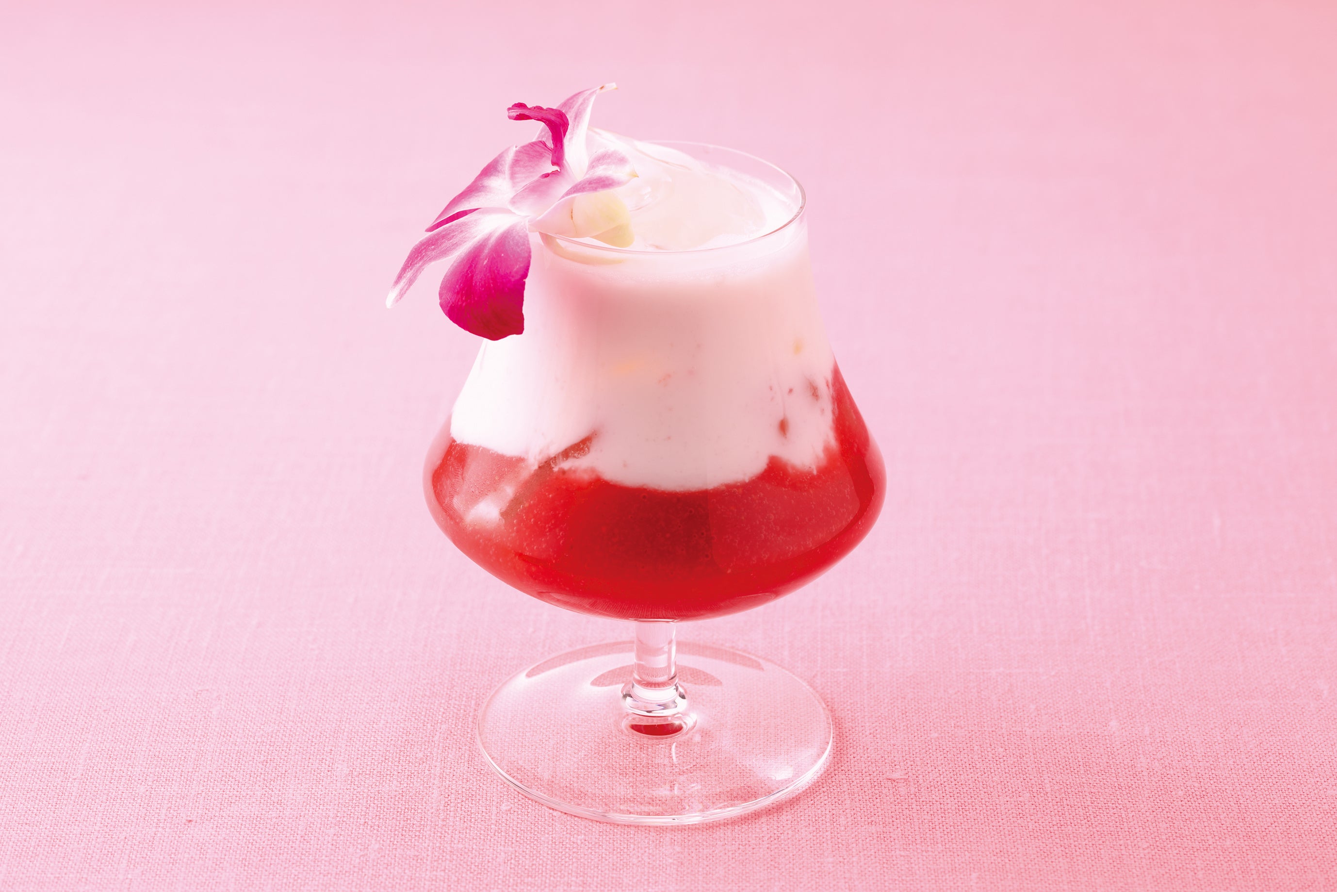 あまおう100%のピューレとミルクを合わせた、ほんのり甘いノンアルコールカクテルです。
