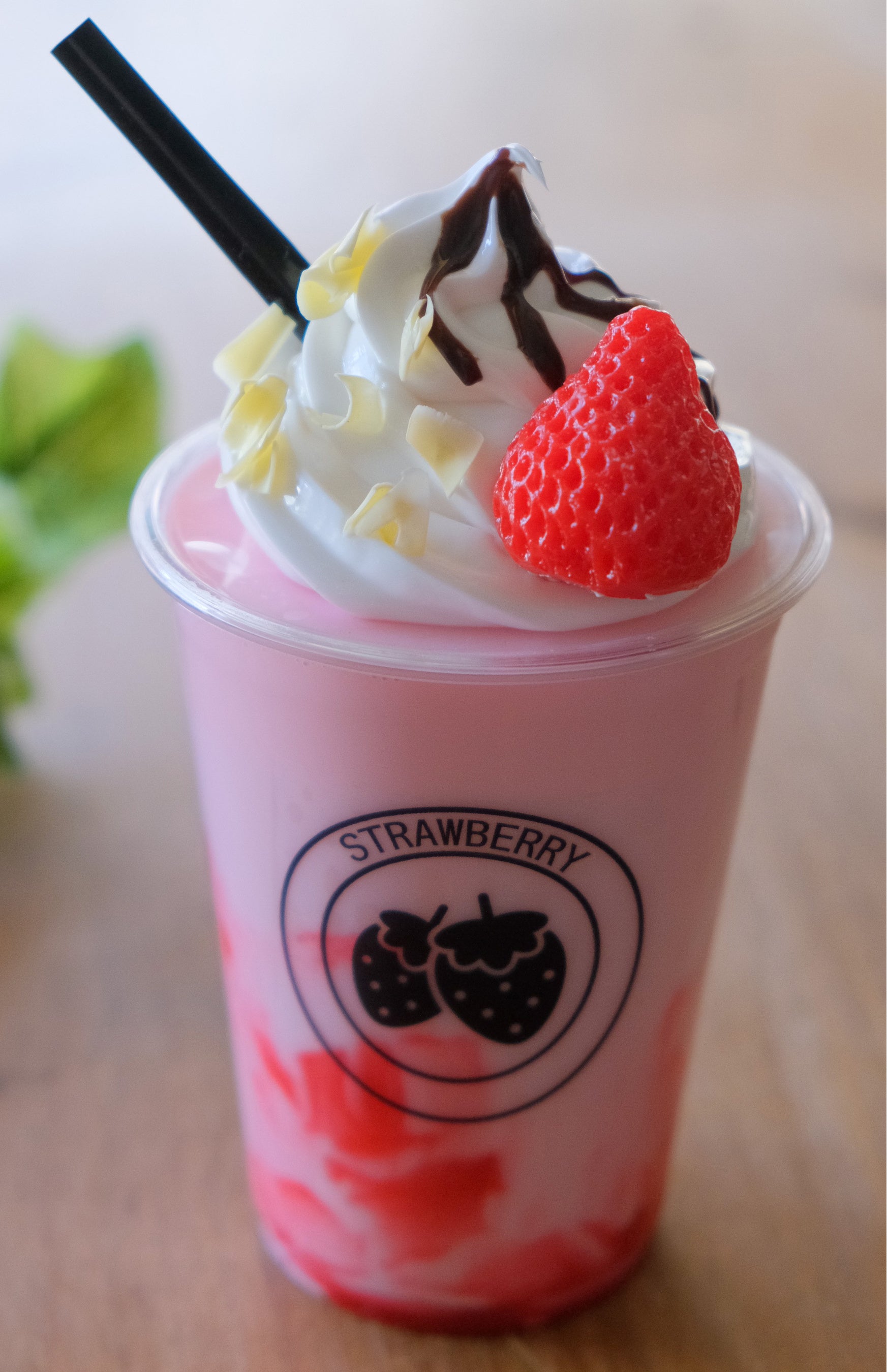 いちごの甘酸っぱさとミルクのまろやかさが絶妙でやさしい味わいのスムージーです。見た目も華やかに仕上げました。