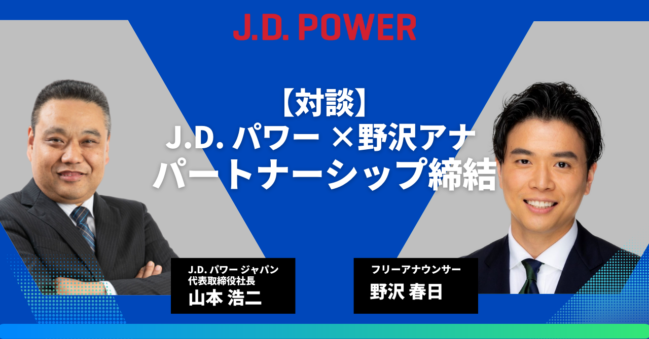 CS(顧客満足度)に関する調査・コンサルティングの国際的な専門機関である株式会社J.D. パワー ジャパン(本社:東京都港区、代表取締役社長:山本浩二、略称:J.D. パワー)は、元テレビ東京アナウンサーで、現在はフリーのアナウンサーとして活躍されている野沢春日さんとパートナーシップを締結したことを発表いたします。
