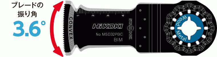 ブレードの振り角を3.6°に拡大することで、高速切断を実現しました。切断スピード約2倍以上に向上しました。