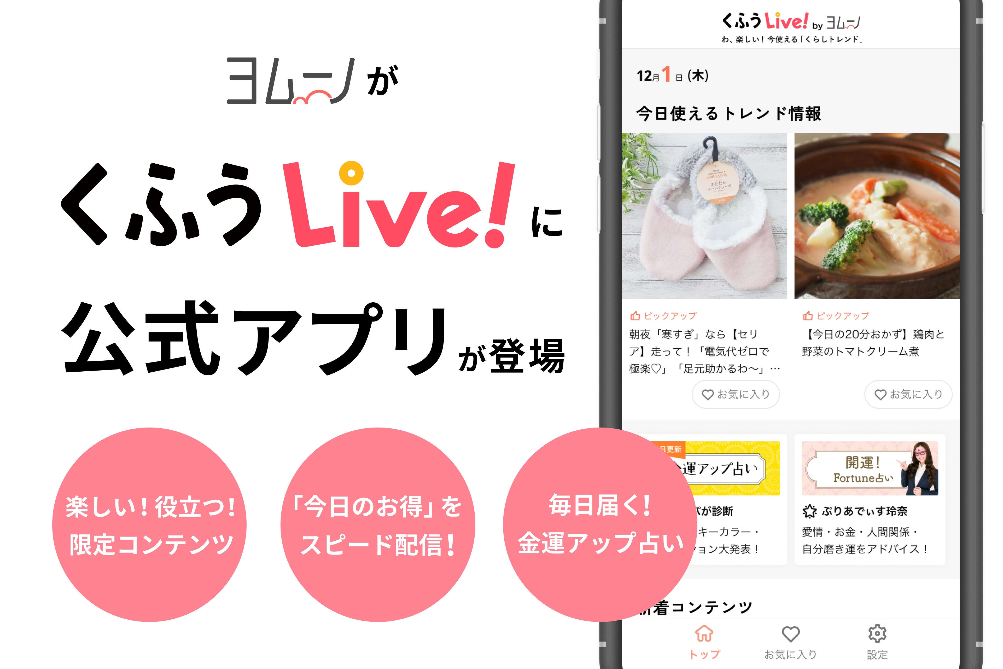 生活総合情報メディアNo.1「くふうLive!」の公式アプリが誕生!