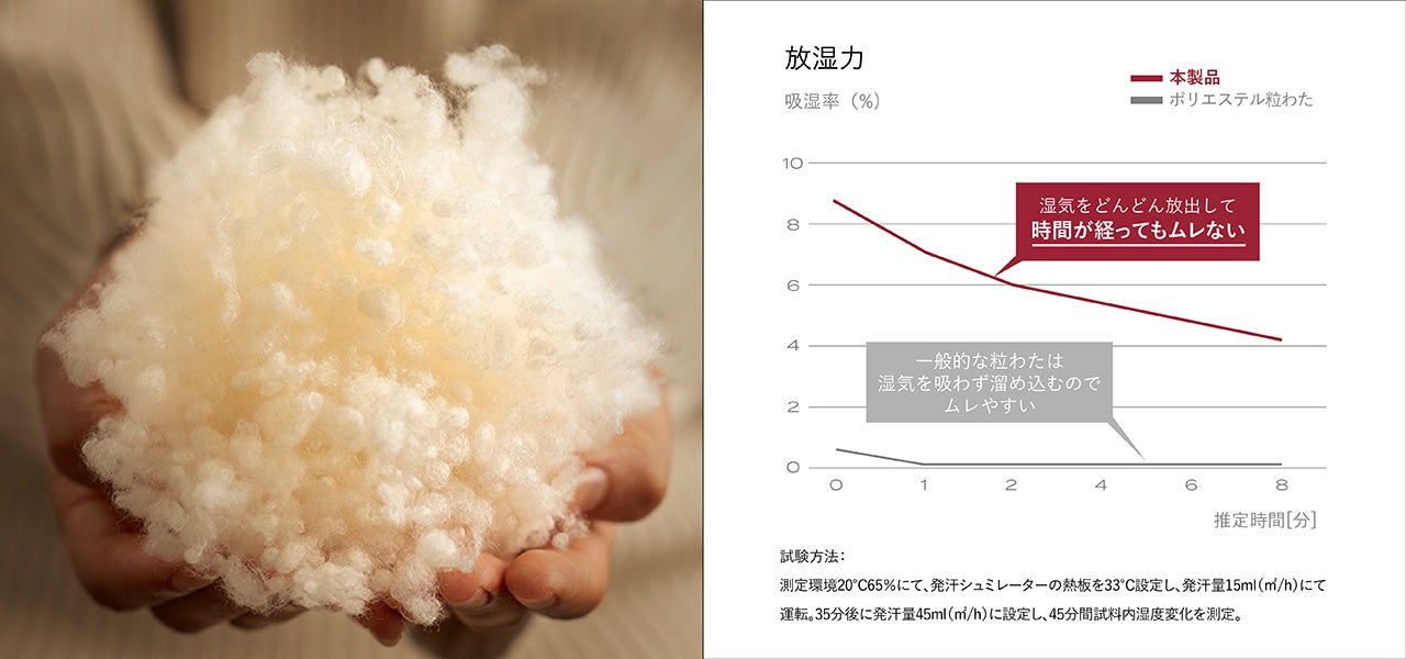 一般的な粒わたの290%超の驚異の吸湿発熱力を持つ「カーボナノダウン」