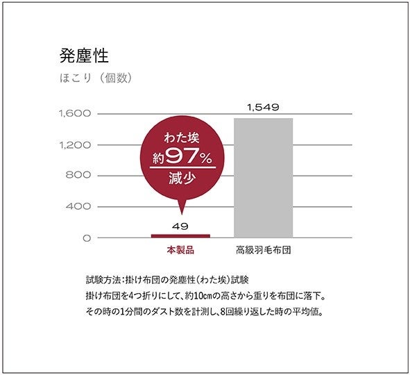 布団から発生するわた埃も最小限だから、毎日安心して使用