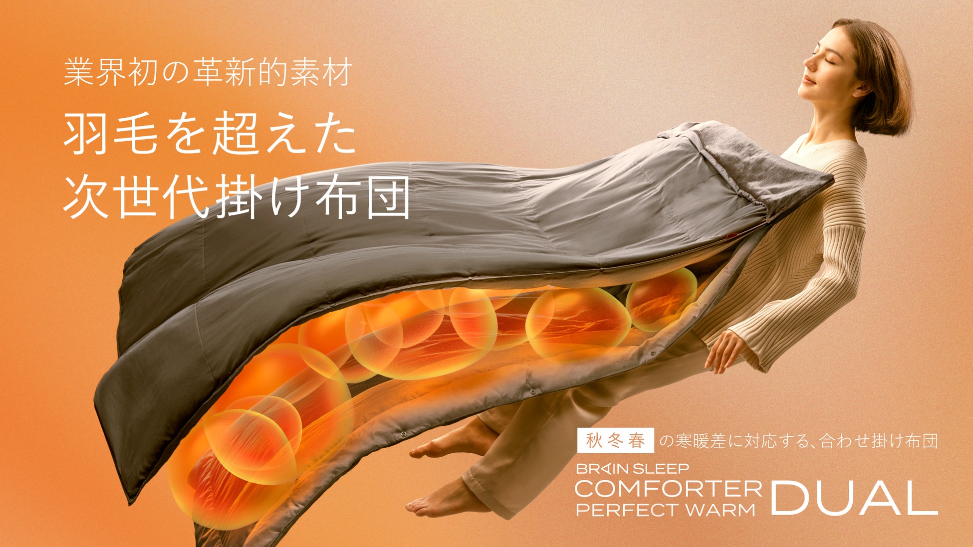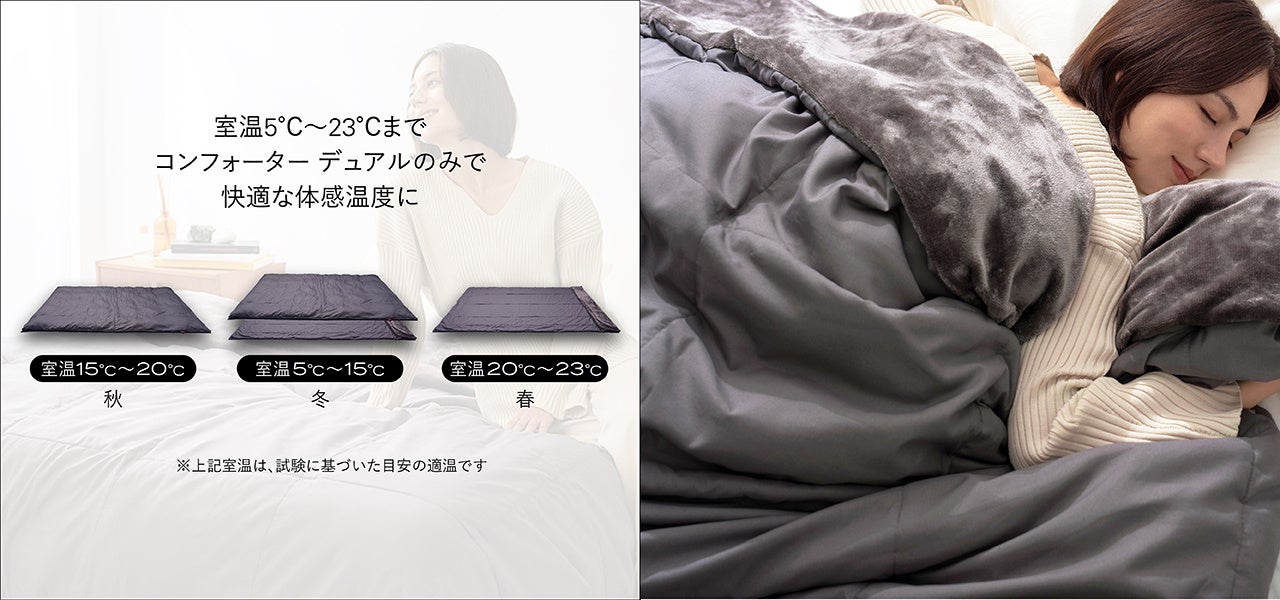 業界初!”真冬”と寒暖差の激しい”春・秋”も長期間快適睡眠!革新的素材とデュアル構造の合わせ掛け布団「ブレインスリープ コンフォーター パーフェクト ウォーム デュアル」