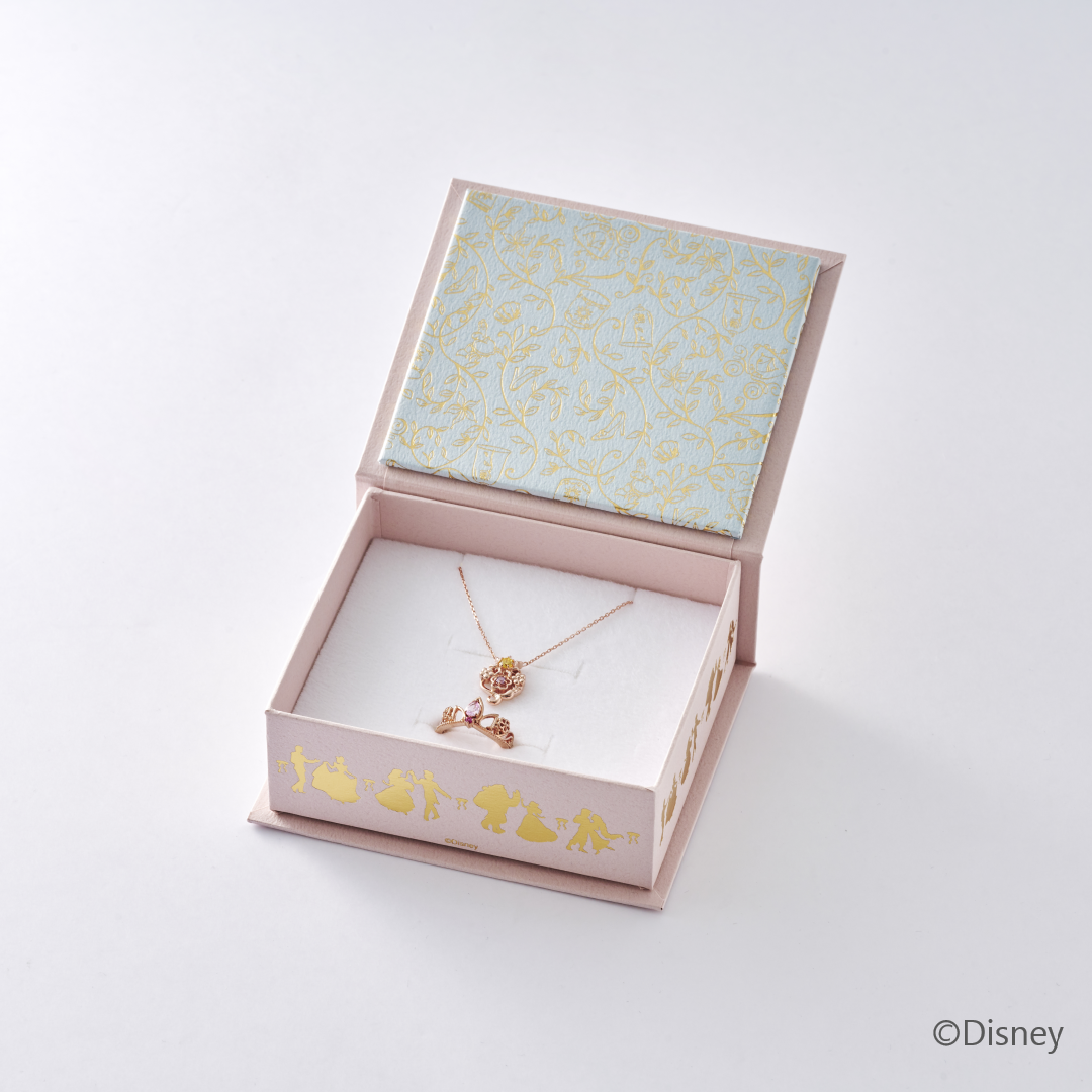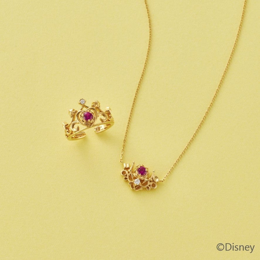 シンデレラ、アリエル、ベル、ラプンツェルの4 人をイメージ。それぞれが登場する物語をイメージしたネックレスと、4 人のプリンセスのティアラをイメージしたピンキーリング& イヤーカフがセットに。