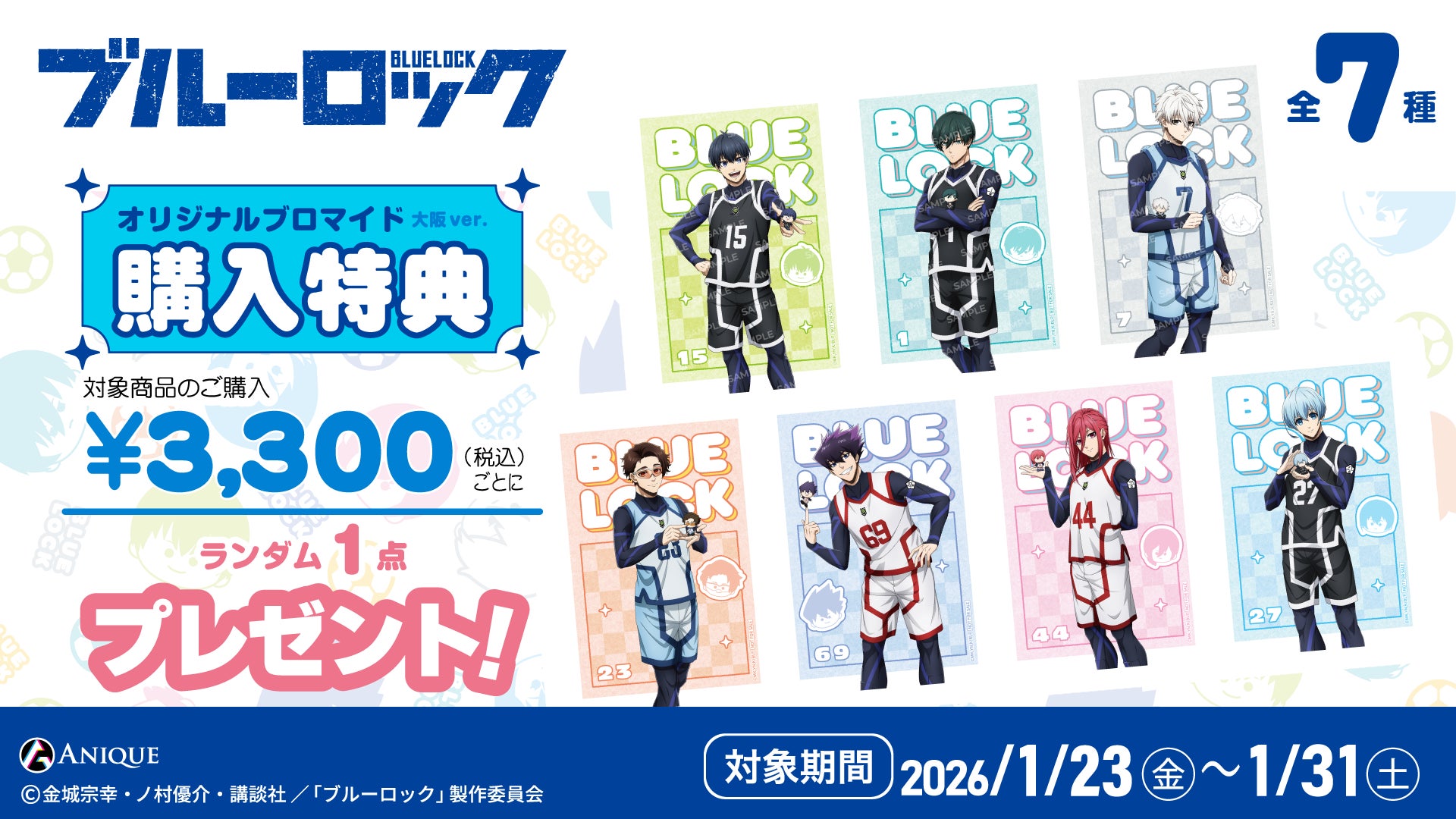 開催期間中、対象商品を3,300円(税込)お買い上げごとにランダムで【オリジナル ブロマイド (全7種)】を1枚プレゼントいたします。