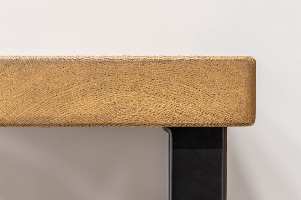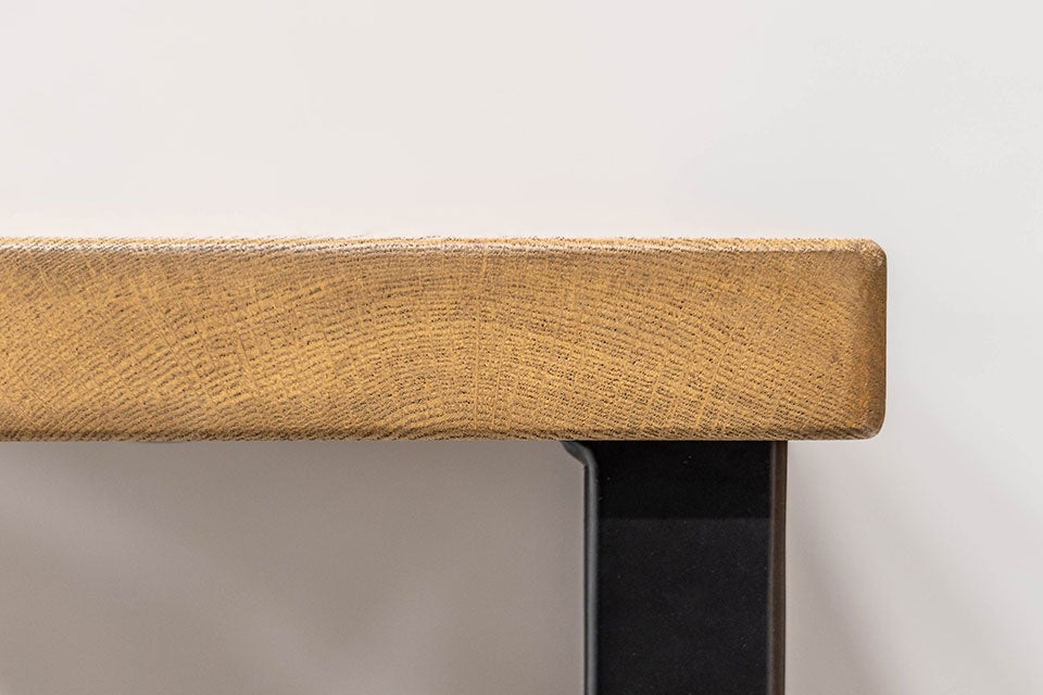 「ミース」は、木の自然な風合いをそのまま活かした「ライブエッジ(耳付き)」天板が追加になりました。丸太の一番外側の"耳"部分を残すことで、一つとして同じものがない個性的なラインを実現。毎日触れるたびに、自然の温もりを感じていただけることでしょう。