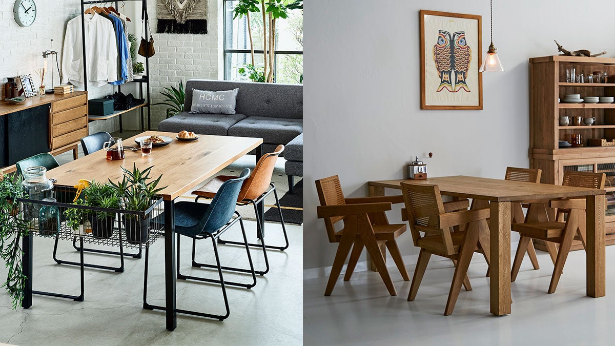 両シリーズとも、テーブル脚を計6種類のデザインからお選びいただけます。同じ天板でも脚部を変えるだけで印象がガラリと変わる楽しさをぜひ体験してください。