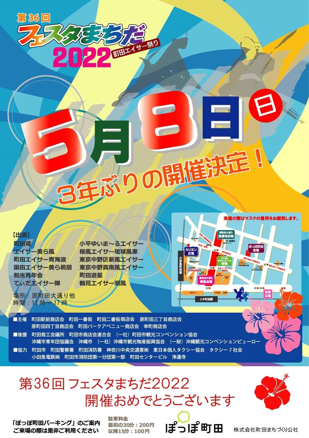 町田市内を中心とした沖縄エイサー踊りの団体を集めて、JR横浜線町田駅前の原町田大通りをメイン会場に演舞を披露する「フェスタまちだ」を3年ぶりに開催します。