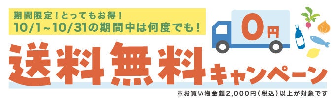 2023年10月1日(日)~10月31日(火)期間中のご注文分について、1注文あたり2,000円(税込)以上お買い上げで対象期間中の配送料が何度でも無料になります。