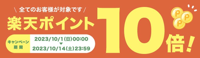 2023年10月1日(日)~2023年10月14日(土)のご注文分について、1注文あたりのお買い物金額2,000円(税込)以上で、「楽天ポイント」10倍になります。