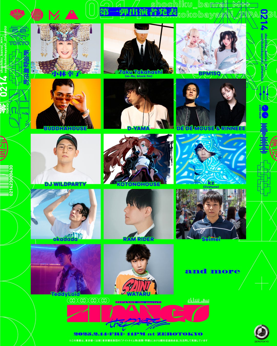 松竹株式会社と株式会社TSTエンタテイメントは、2025年2月14日(金)新宿・歌舞伎町、国内最大級のナイトクラブ『ZEROTOKYO』にて、日本の伝統音楽である雅楽や神楽囃子から歌謡曲、最新EDMが融合する革新的音楽イベント「ZIPANGU the Party!!」を開催します。これまで130年にわたり多様なエンタテイメントを手がけてきた松竹と、音楽イベントのパイオニアであるTSTエンタテイメントが初コラボし、時代や文化を超えた、刺激的で新感覚のカルチャーミックス体験をお届けします。
