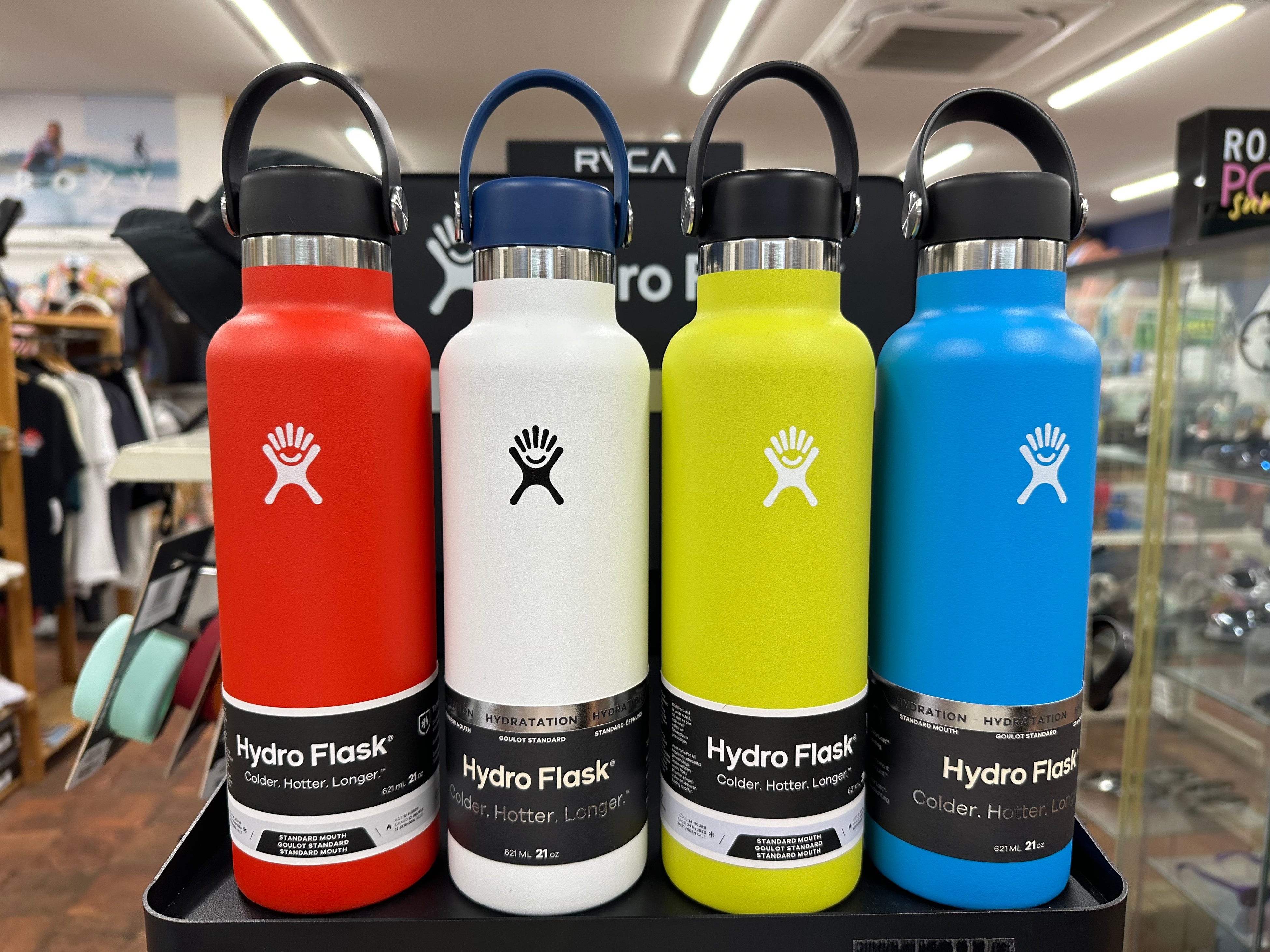 全米人気No.1のボトルブランドHydroFlask!(ハイドロフラスク)の断熱ボトル。保冷・保温に優れているため海での水分補給に便利です。持ち運びに便利な持ち手がついたポップなカラーのボトルは長時間外に出ているサーファーたちにも好評。18/8プログレードステンレス鋼を使用しているため、丈夫で錆びにくく、味移りの心配もありません。