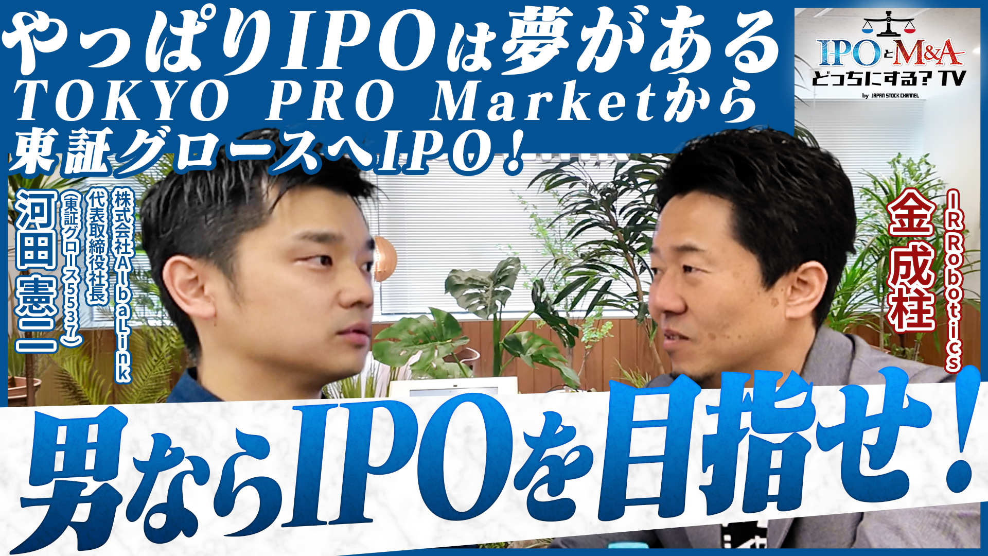 株式会社IR Robotics(本社:東京都千代田区、代表取締役:金 成柱、HP:https://ir-robotics.co.jp/)は、YouTubeチャンネル「IPOとM&Aどっちにする?TV」にて、株式会社AlbaLink(東証グロース5537) 代表取締役 河田憲二氏が出演する動画を公開いたしました。