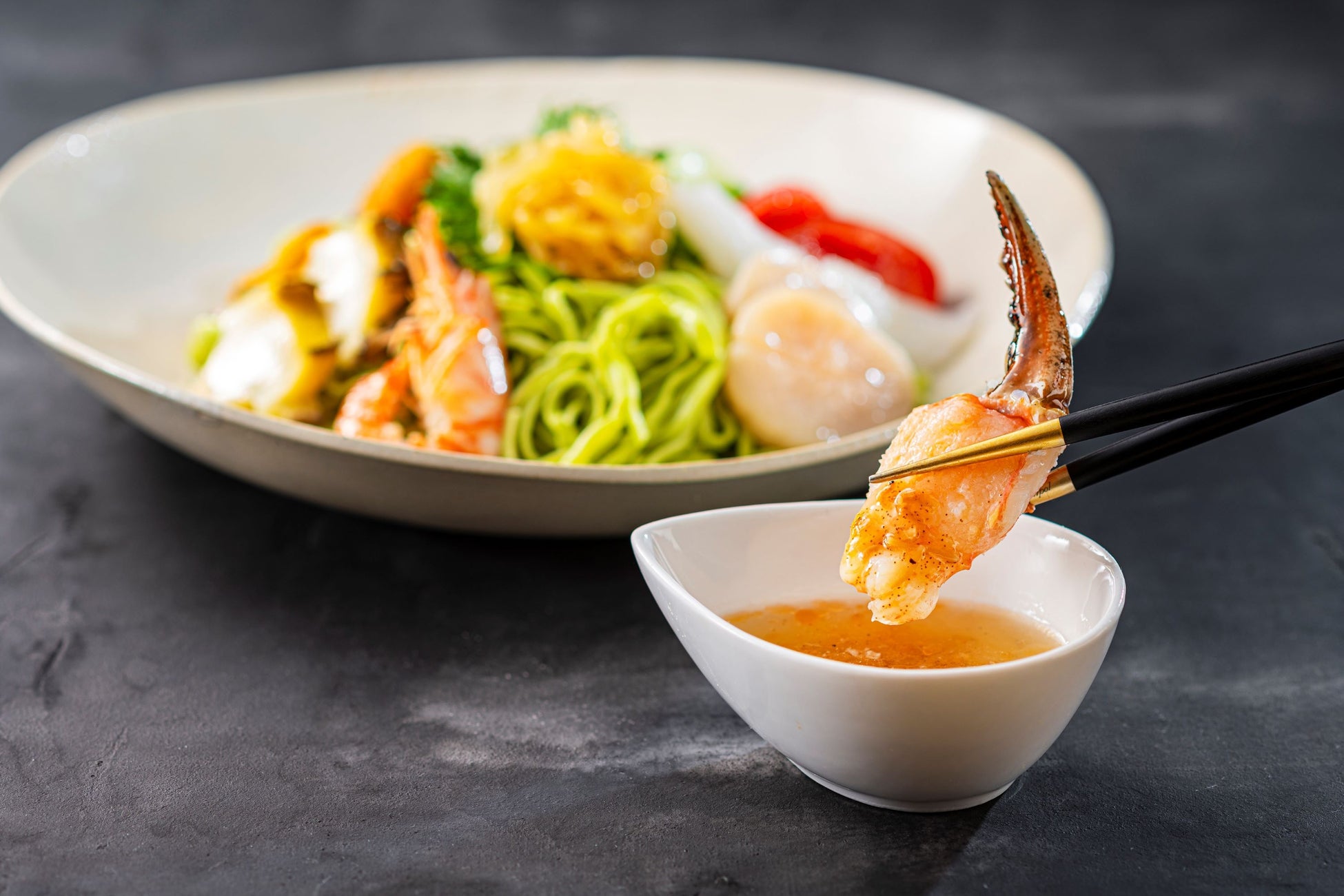 毎年多くのお客様よりご好評をいただいている「彩龍」の夏の定番、「海鮮冷麺 ~3種ソース食べ比べ~」が、今年も登場いたします。野菜を練り込んだ鮮やかなグリーンが目にも涼やかな平打ちの翡翠麺に、煮あわび、蟹爪、海老、帆立、イカといった海の幸を豪華に盛り込んだ、「彩龍」イチオシの逸品です。味の決め手となるのは、3種類のオリジナルソース。さっぱりとした「醤油ダレ」、香ばしさとコクが広がる「胡麻ダレ」、そして深みのある辛味が特徴の「XO醤ジュレ」。それぞれのソースが素材の持ち味を引き出し、ひと皿でさまざまな味の変化をお楽しみいただけます。さらにもう一品、「彩龍」不動の人気メニュー「冷やし担々麺」に、この夏限定バージョンが登場。コシのある全粒粉の麺に、胡麻の豊かな香りと、唐辛子や青山椒の爽やかな刺激が加わった濃厚な冷製スープが特徴の「冷やし担々麺」に、柔らかく煮込んだ温かい黒毛和牛をたっぷりとのせ、さらに「彩龍」と契約する千葉県※中台農園の中国野菜や、神奈川県産の新鮮な夏野菜をふんだんに使用し、リッチな一品に仕上げました。お好みで自家製ラー油を加えますと、一層豊かな風味と味わいがお楽しみいただけます。