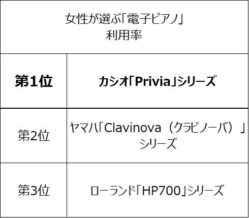 ◆女性が選ぶ「電子ピアノ」ランキング、利用率1位は「カシオ」
