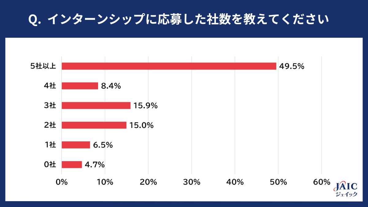 ■インターンシップの応募社数:「5社以上」が約半数(49.5%)