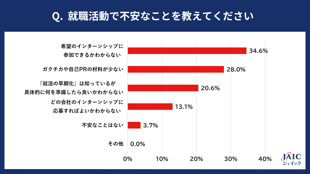 25卒学生が就活で不安なこと 1位「希望のインターンシップに参加できるか」