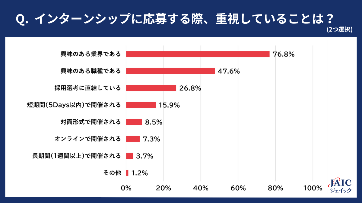 ―インターンシップ応募の際に重視すること「興味のある業界」が約8割―