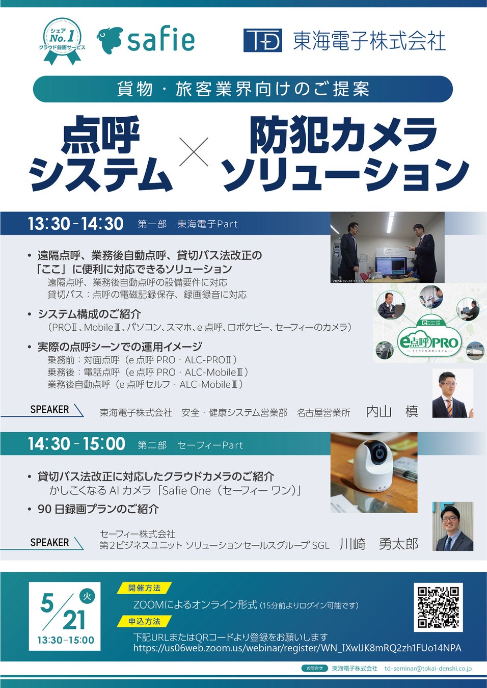 【セーフィー×東海電子 合同ウェビナー】貨物・旅客業界向けのご提案 点呼システム×防犯カメラソリューション5月21日(火)無料開催のお知らせ