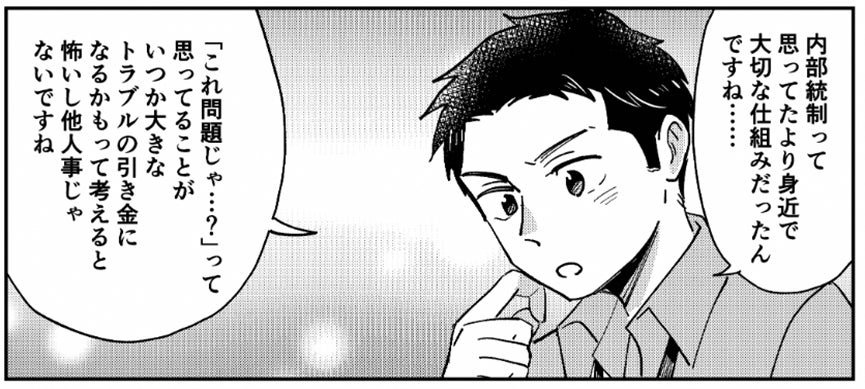 市として内部統制を推進している目的・意義を、より効率的、効果的に全職員に理解し、職員意識の醸成図るにはどうしたら良いかを考え、いきついたのが、コミックという手法でした。日常業務をこなしながら、講義や動画研修を受けることは、拘束時間も長く、職員の負担ともなり、いつでも、どこでも、隙間時間にも読むことができ、好きな時に、見返せる点においても、魅力を感じ導入を決定しました。内部統制という一見難しいテーマを、実際の職員に近いキャラクター、初めて学ぶ方にも伝わりやすい内容で、教材のストーリーに共感しやすいという部分も導入の決め手となりました。