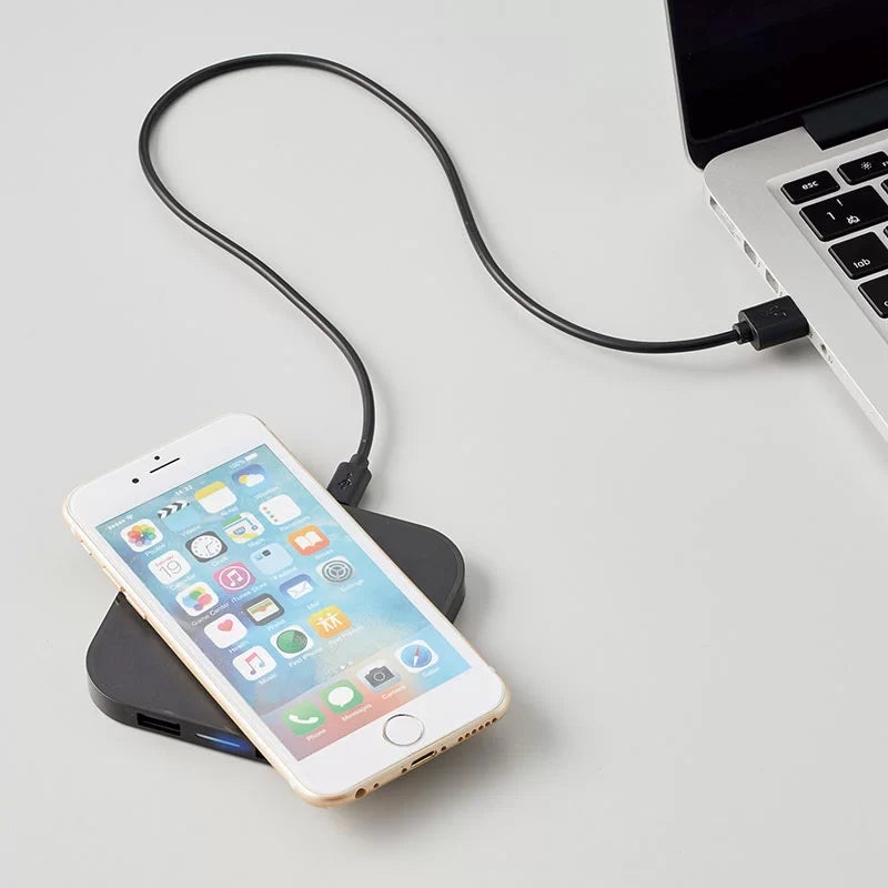 オリジナルワイヤレス充電器は、軽量・コンパクトで持ち運びにも便利。付属のmicroUSBケーブルと取扱説明書も同梱されており、ギフトや販促用としてそのまま活用できます。