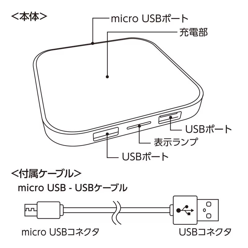 全商品に取扱説明書と充電用microUSBケーブルが付属。すぐに使える親切仕様で、ギフトや販売品にも最適です。