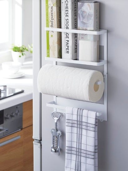 累計32万個以上販売した、マグネット冷蔵庫マルチラック。ラップやキッチンペーパーなどよく使うものを1か所にまとめて収納できます。サッと取りやすく、バラバラに収納し雑然としがちなキッチンをスッキリさせる便利な商品です。2022年7月に黒色の販売も開始。黒色を使用すれば、キッチン周りがよりスタイリッシュな印象に。