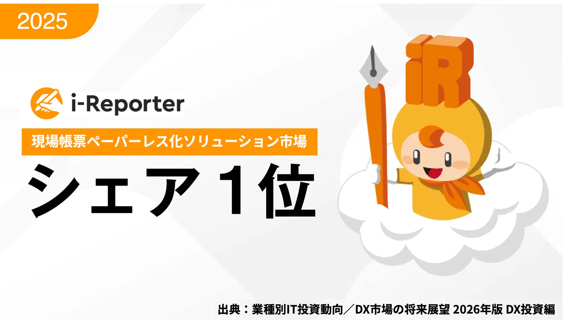 株式会社シムトップス(本社:東京都品川区、代表取締役:水野貴司)が提供する現場帳票システム「i-Reporter」は、株式会社富士キメラ総研が2026年2月17日に発刊した市場調査レポート『業種別IT投資動向/DX市場の将来展望 2026年版 DX投資編』において、「現場帳票ペーパーレス化ソリューション」分野の2024年度ベンダーシェア(数量)で46.5%を占め、国内シェアNo.1となりました。