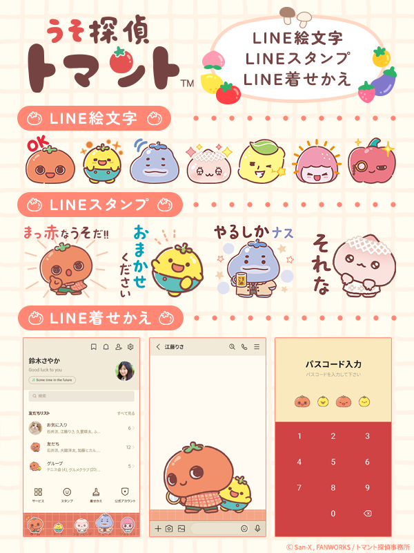 「うそ探偵トマント」は、サンエックス株式会社と株式会社ファンワークスが共同で手掛けるキャラクターIPです。やさいやくだものをモチーフとしたユニークな個性豊かなキャラクターたちが登場する、かわいらしさと本格ミステリー要素を掛け合わせた作品で、幅広い世代にお楽しみいただける“かわいい×ミステリー”の新ジャンル作品です。