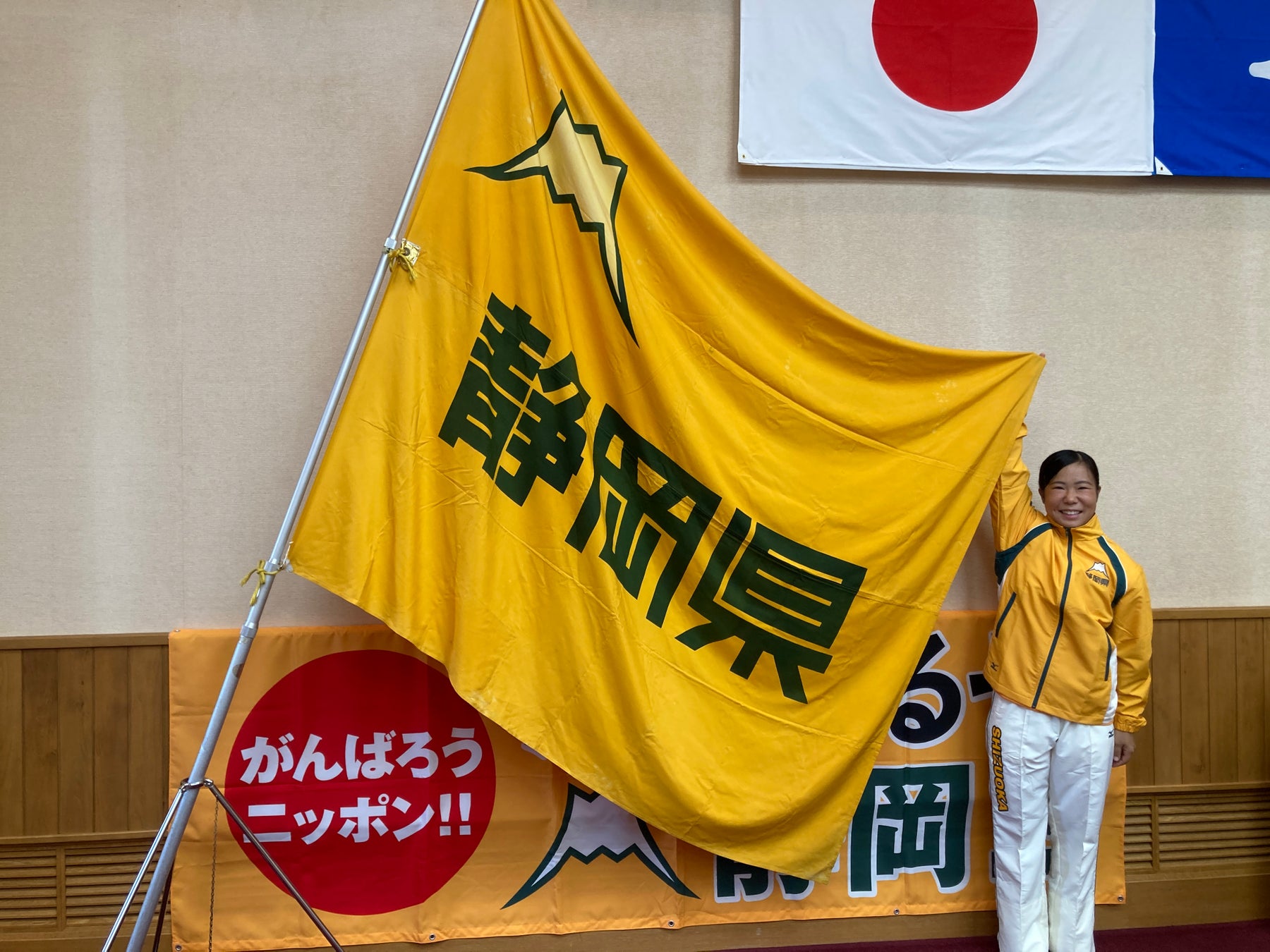 鈴与株式会社所属 女子ラグビー 山本みなみ選手に『特別国民体育大会』静岡県選手団結団式で県旗が授与