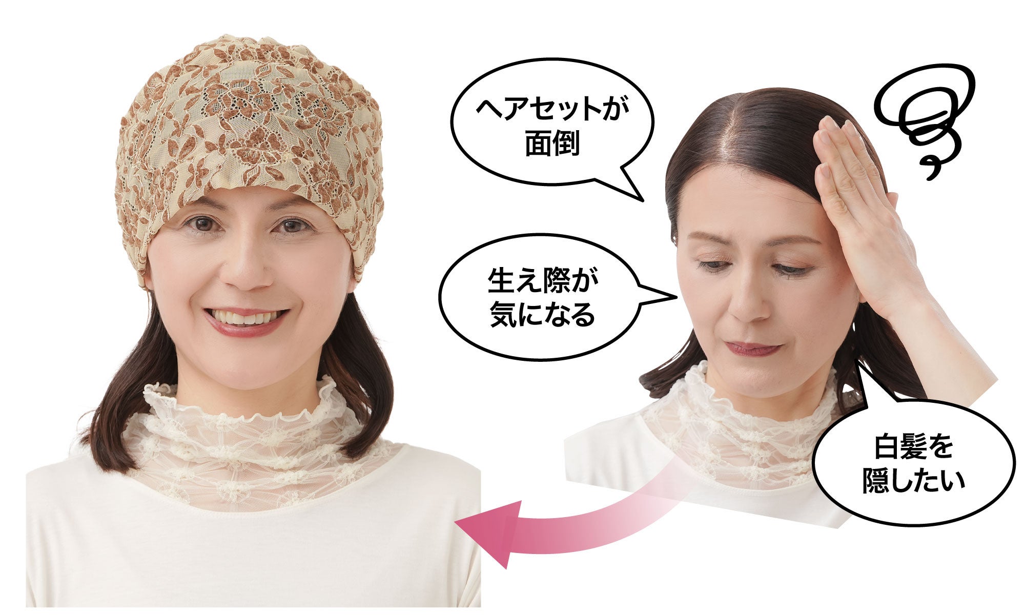 気になる白髪や薄毛、乱れ髪、サッとかぶってエレガント!急な外出や来客時に!