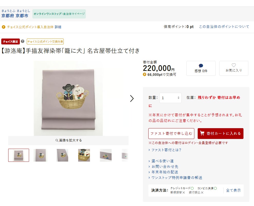 染呉服メーカー「游洛庵」が、京都市ふるさと納税返礼品に京友禅の名古屋帯をご提供